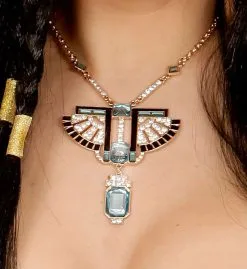 Egyptische Ketting Goud Farao Met Topaas / Strass Steen