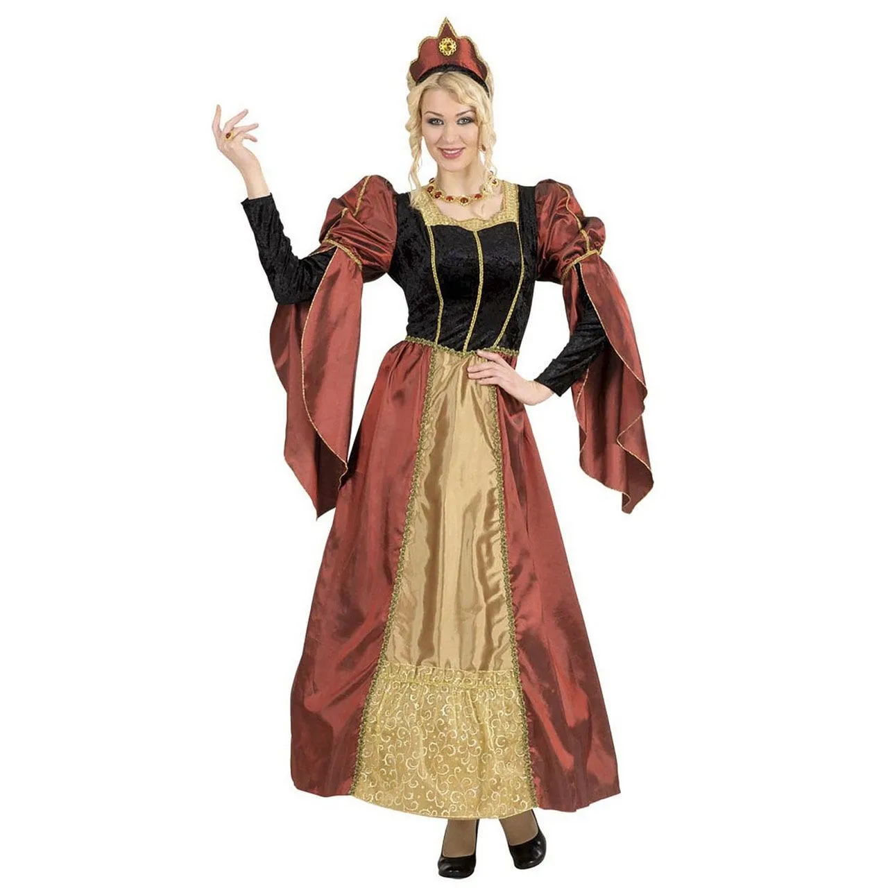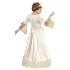 Heb je altijd afgevraagd hoe het is om een hoepelrok te dragen dan is het Koninklijke Prinses Palace Prinses Kostuum precies het pak voor jou. Je moet wel de juiste gelegenheid uitkiezen om deze kleding te dragen. De mouwen van de jurk zijn zo wijd en flapperig dat ze bij een uitgebreide maaltijd zeker een keer in de soep zullen belanden. En een spectaculaire breakdance zit er in dit prinsesselijke gewaad ook niet in…